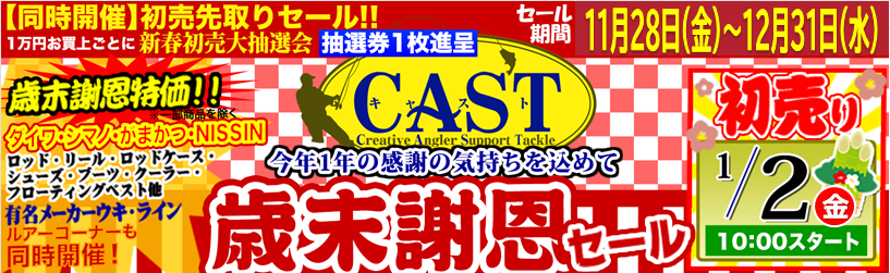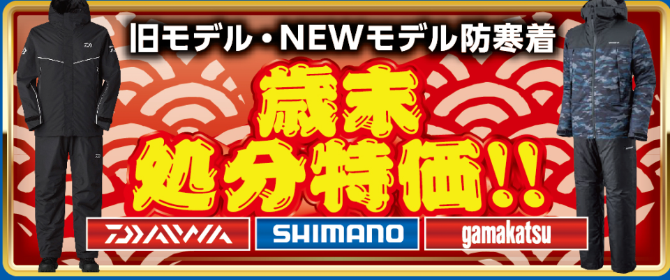- ダイワ・シマノ・がまかつ・NISSIN有名メーカー歳末謝恩特価 !!ロッド・リール・ロッドケース・シューズ・ブーツ・クーラー・フローティングベスト有名メーカーウキ・ライン・エサ・灯具 他・・※一部対象外有