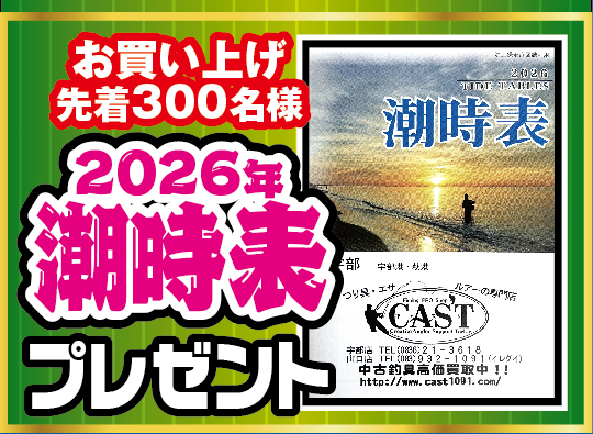 先着300名様限定!セールハガキと引き換えに「2026年度 潮見表」プレゼント!