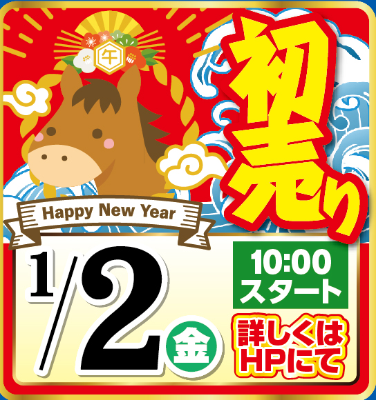 初売り 1月2日(金)AM10時よりスタート!! ※詳しくは年末発表のHPにて!