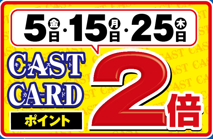 12月5日(金)、15日(月)、25日(木)は・・・ CASTCARD会員様プレミアムカード感謝デー!CASTカードポイント2倍!!