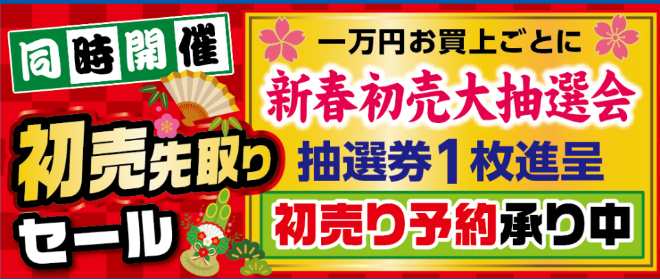 【同時開催】初売先取りセール!!1万円お買上ごとに新春初売大抽選会抽選券1枚進呈!