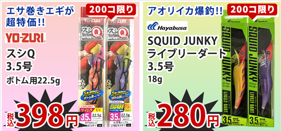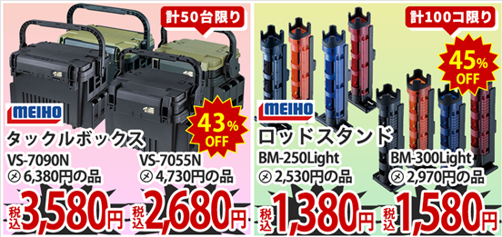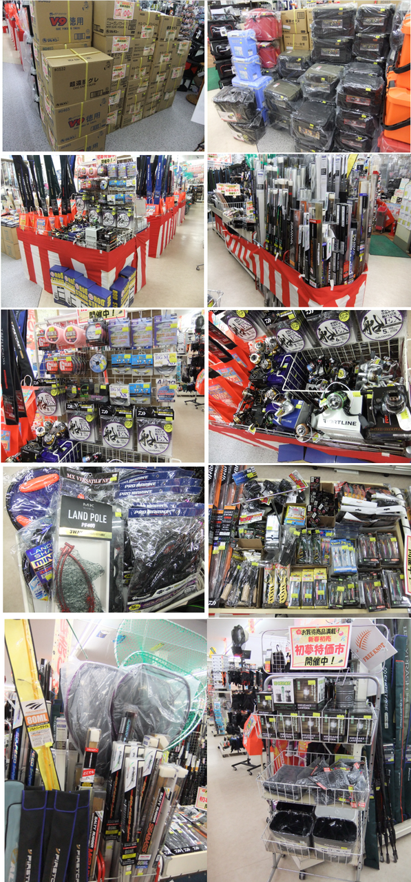 ロッド・リール・ロッドケース・シューズ・ブーツ・クーラー・フローティングベスト・ウキ・ライン・エサ・エギ・灯具 他・・初売り特価にて御奉仕!