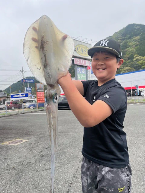 3m沖のボトムでヒットしました(笑) アオリーQエース3.5号のドットマーブルで釣れました♪