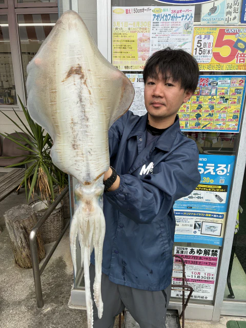ヒットエギはEZ-Qキャスト喰わせラトル3.5号「夜光マーブルオレンジ」です!3Kg目指して頑張ります!