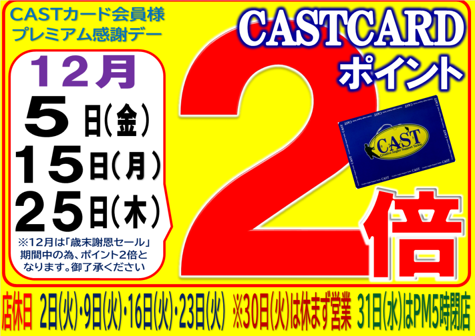 \\ 12月5日(金)・15日(月)・25日(木)CASTカードポイント2倍! //